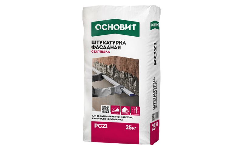 Штукатурка ОСНОВИТ СТАРТВЭЛЛ PC21 предназначена для выравнивания стен из бетона, кирпича, пено- и газобетона.
